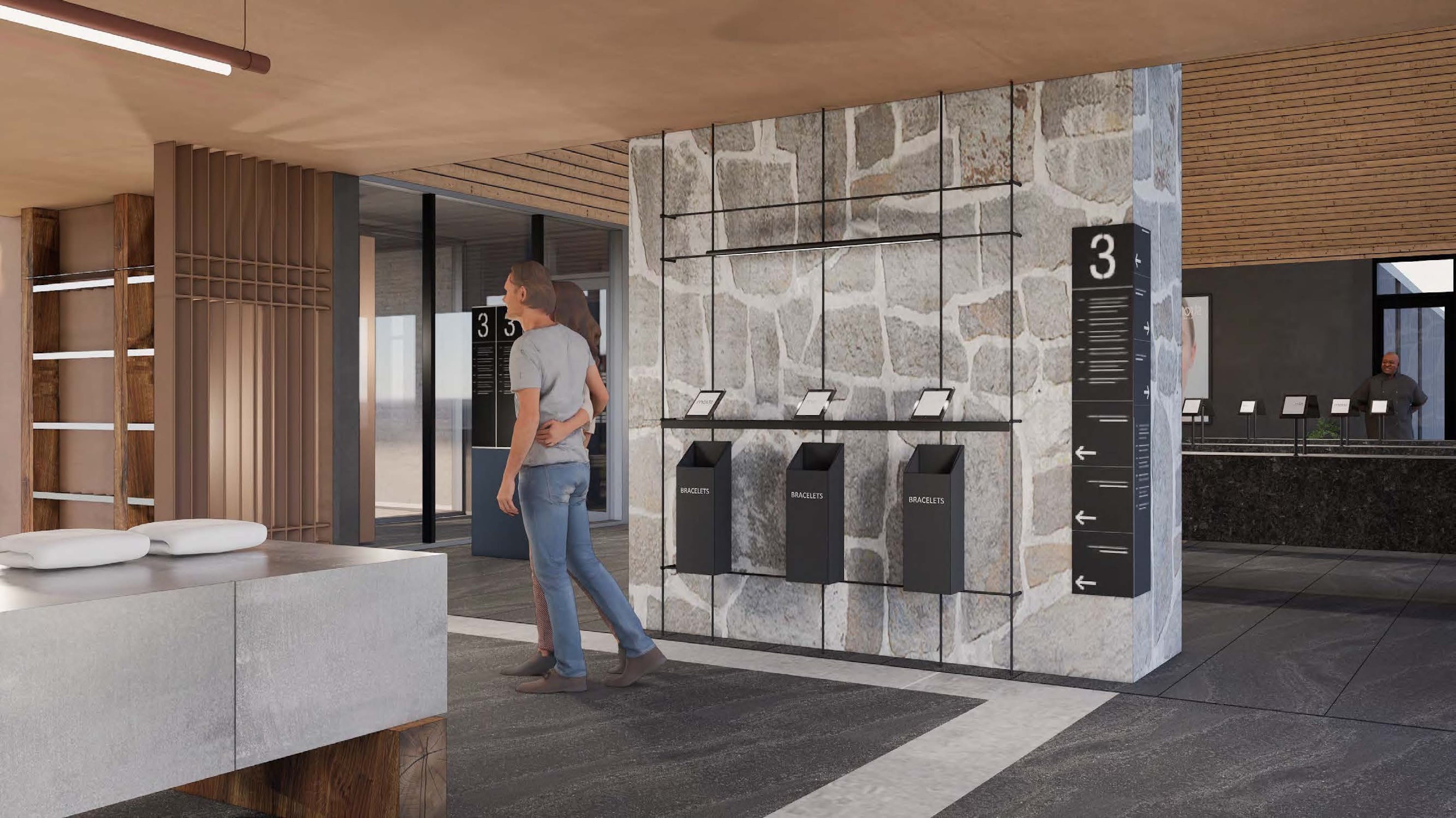 The new phase on the other side of the river will soon include an enlarged parking area with more than 300 spaces. The site entrance will also be moved to des Mélèzes Street where a fully redesigned reception area will welcome you into a more seamless journey. Self-service kiosks, smart bracelets giving you access to the facilities and your locker, along with personalized guidance from our advisors will make your arrival, and your overall experience, simple and serene. We look forward to welcoming you there.