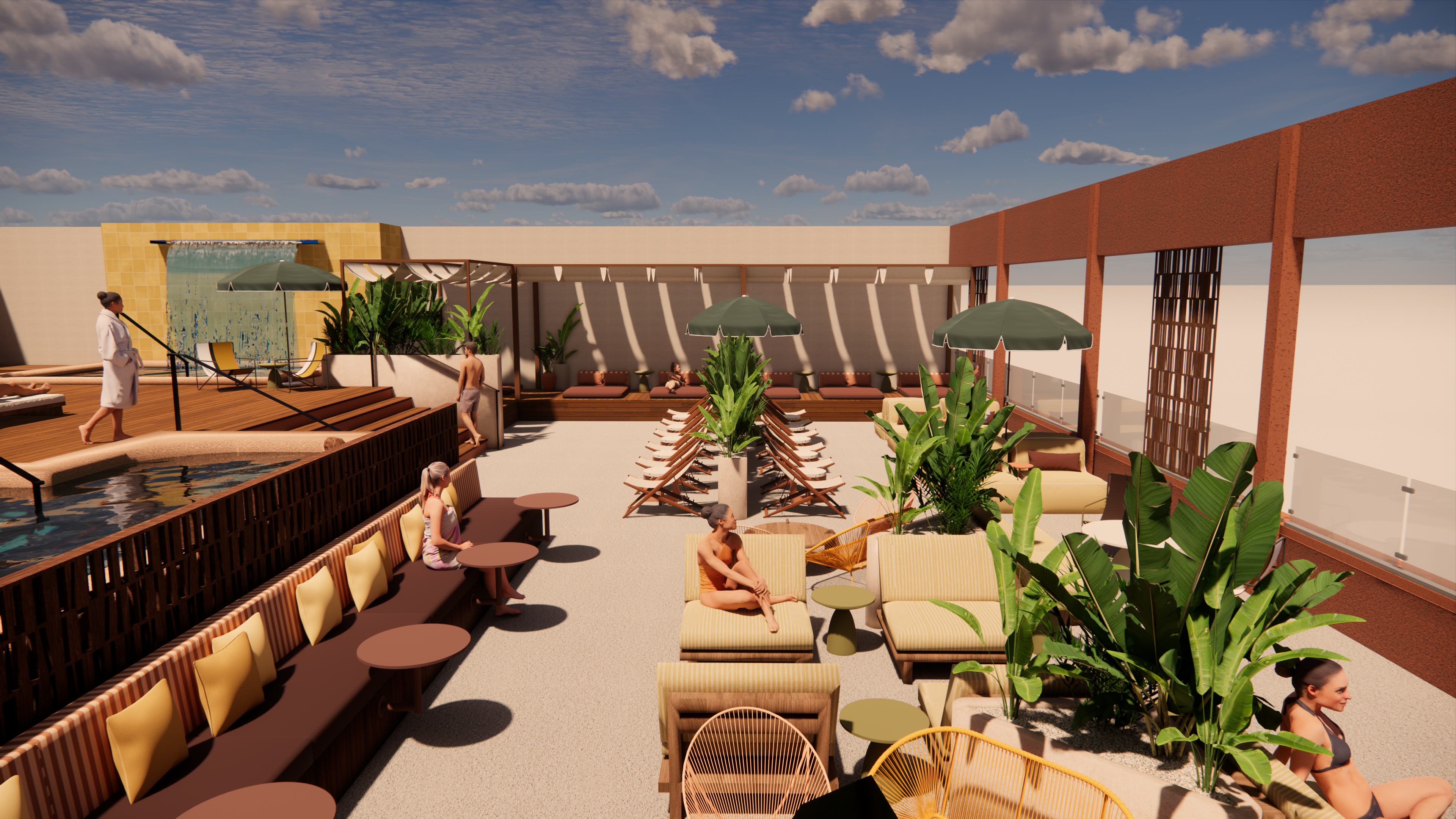 Hot pools, cold waterfalls, saunas, and steam baths combine to create a thermal circuit designed for relaxation and physical recovery. Aufguss rituals punctuate the sauna experience with guided sensory sequences. A variety of comfortable seating options, both indoors and outdoors, promote relaxation.