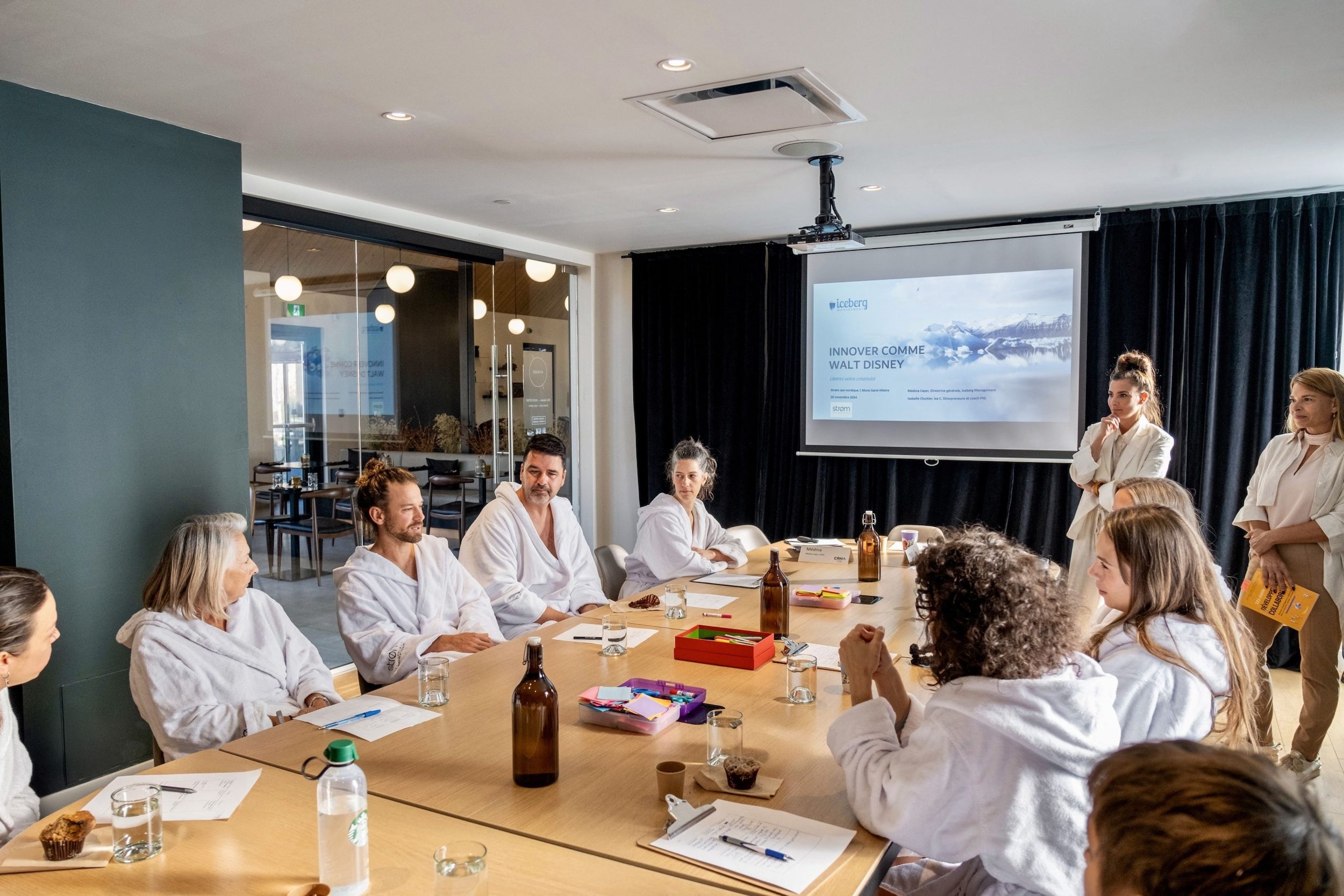 Renforcez vos liens d'équipe en réservant un forfait d'atelier d'équipe au Strøm spa nordique Saint-Sauveur en partenariat avec Iceberg Management.